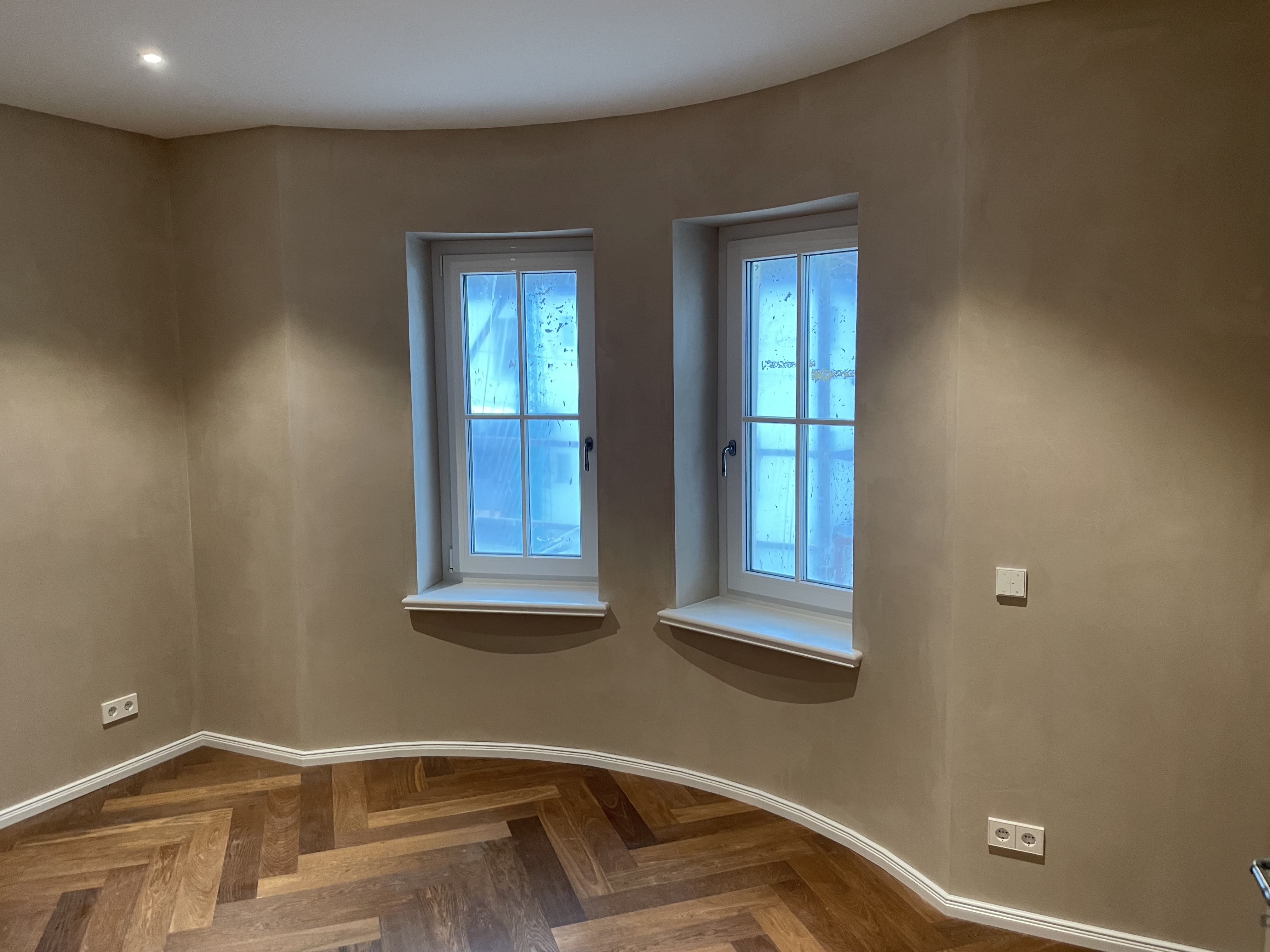 Das Einfamilienhaus wurde vollständig saniert, um den Standard eines Energieeffizienzhauses 70EE zu erreichen, dabei wurden KFW- und Fördermittel der Stadt Stuttgart genutzt. Die Gebäudehülle erhielt ein Wärmedämmverbundsystem (WDVS), die Dachsanierung erfolgte mit Aufsparrendämmung und neuen 3-fach verglasten Fenstern. Ein dünnschichtiges Fußbodenheizungssystem mit Wärmepumpe und Photovoltaik auf dem Dach wurde installiert. Der Innenausbau umfasste Kalkputzwände, hochwertigen Fischgrätparkett, stilvolle Innentüren im Altbau-Look mit passender Zarge und Beschlägen sowie ein modernes Bad mit deckenhohen Fliesen und einem abgesetzten Duschbereich.